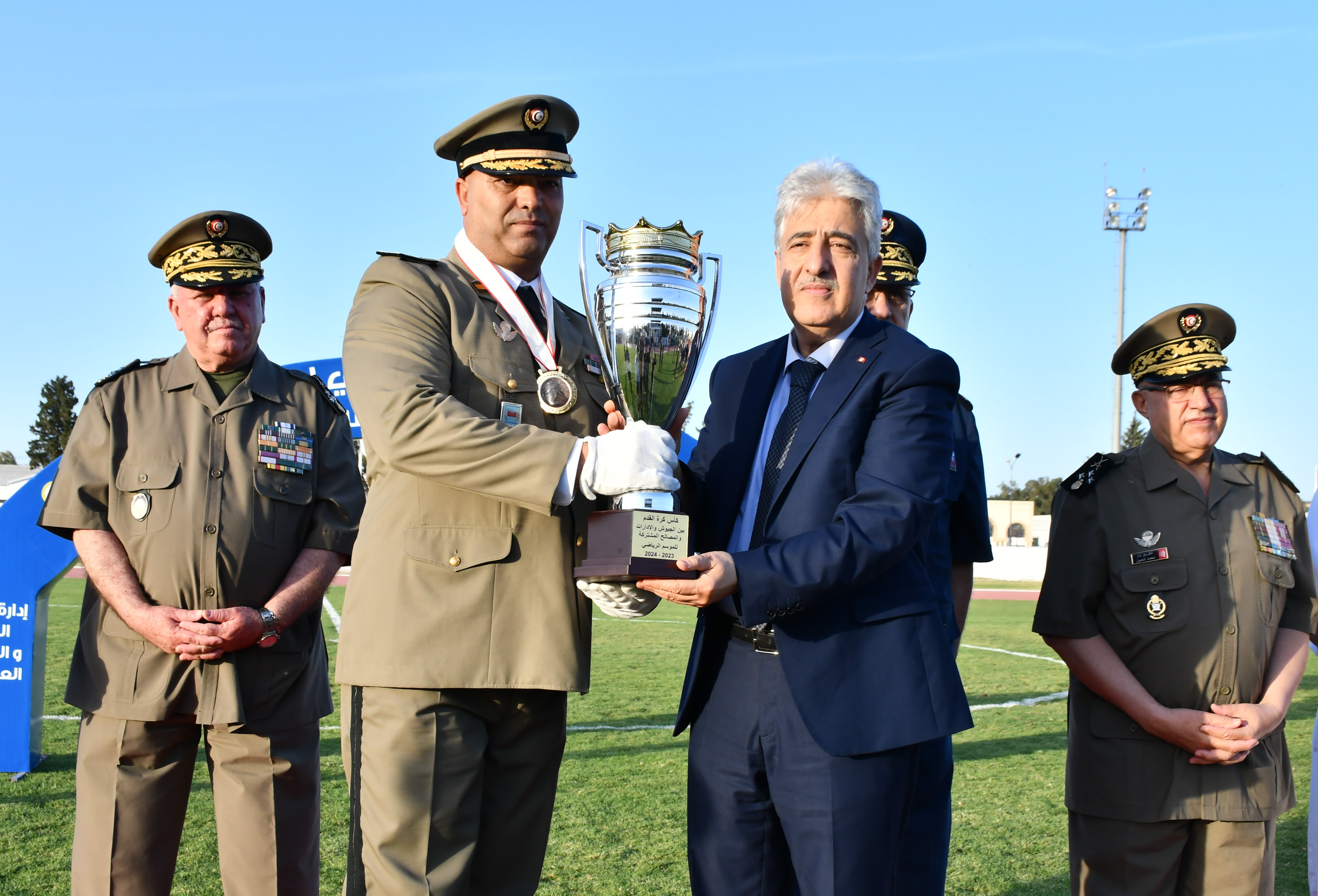 كما تولى وزير الدفاع الوطني بمعيّة ضيوفه تقديم الكؤوس والجوائز لفائدة الفرق والرياضيّين المتوجين في مختلف الاختصاصات والمسابقات الرياضية لهذا الموسم الرياضي العسكري.