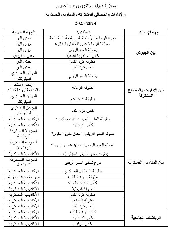 وأكد وزير الدفاع الوطني بالمناسبة على الدور الهام الذي يُوليه الجيش الوطني للرياضة العسكرية باعتبار أهميتها ودورها الأساسي في بناء عسكري وجيش سليم ومتكامل ومساهمتها في الرفع من مستوى الجاهزية البدنية والنفسية للأفراد، ومعاضدتها في تطعيم النخبة الوطنية بالرياضيين العسكريّين المتميزين، بما يساهم في رفع الراية الوطنية في مختلف المسابقات الرياضية الإقليمية والقارية والعالمية.